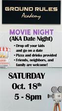 The Pleasanton community is invited to a delightful Movie Night hosted by Ground Rules Academy on Saturday, October 18th, from 5:00 PM to 8:00 PM. Enjoy an evening of entertainment with complimentary food and beverages provided for all attendees.